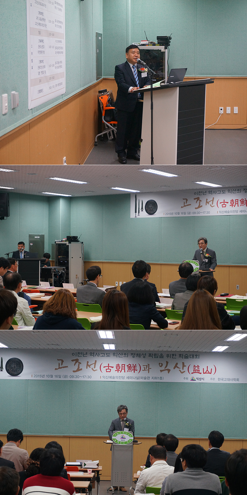 고조선과 익산 학술대회 기조강연 및 발표 모습입니다.