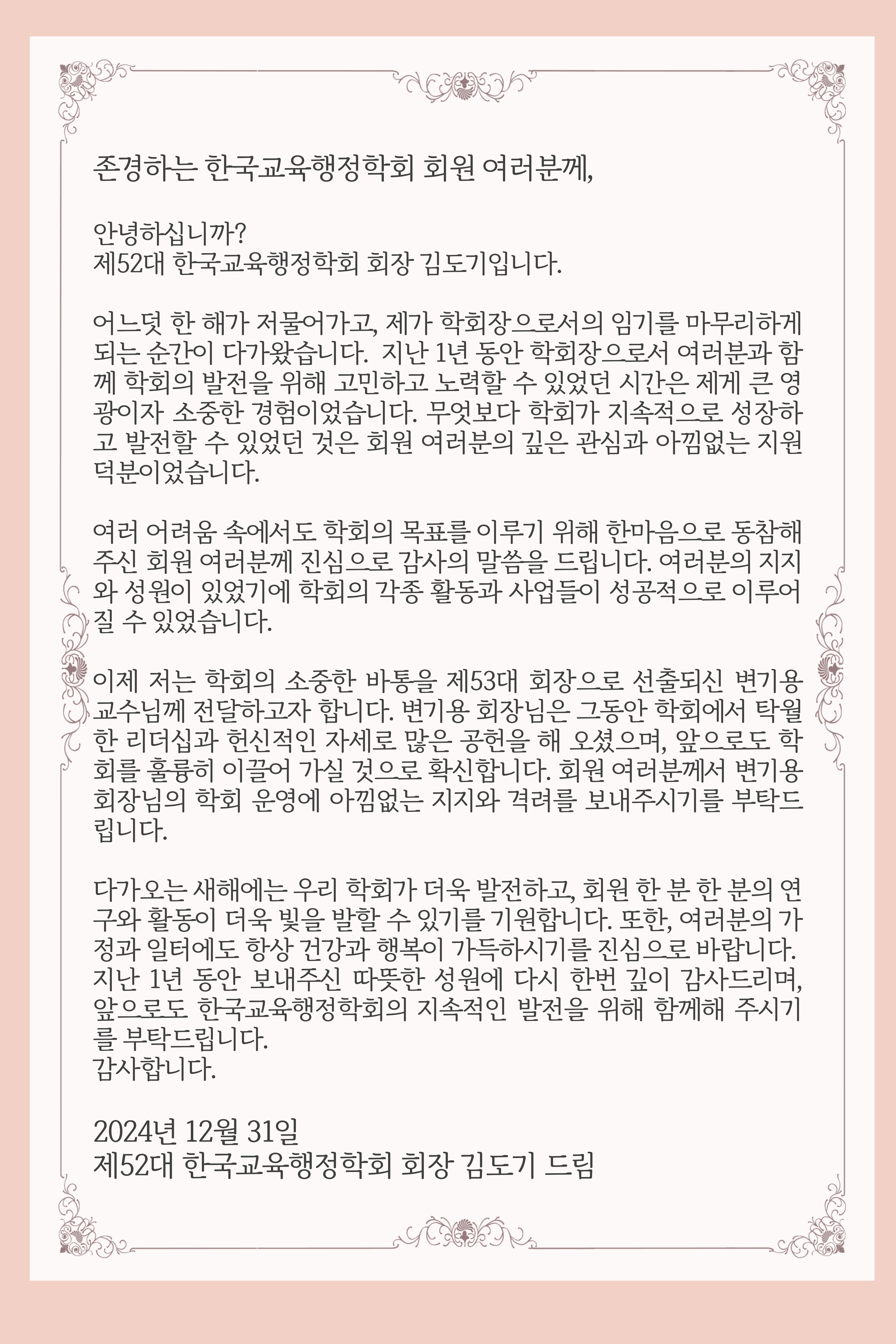 제52대 김도기 학회장 이임사