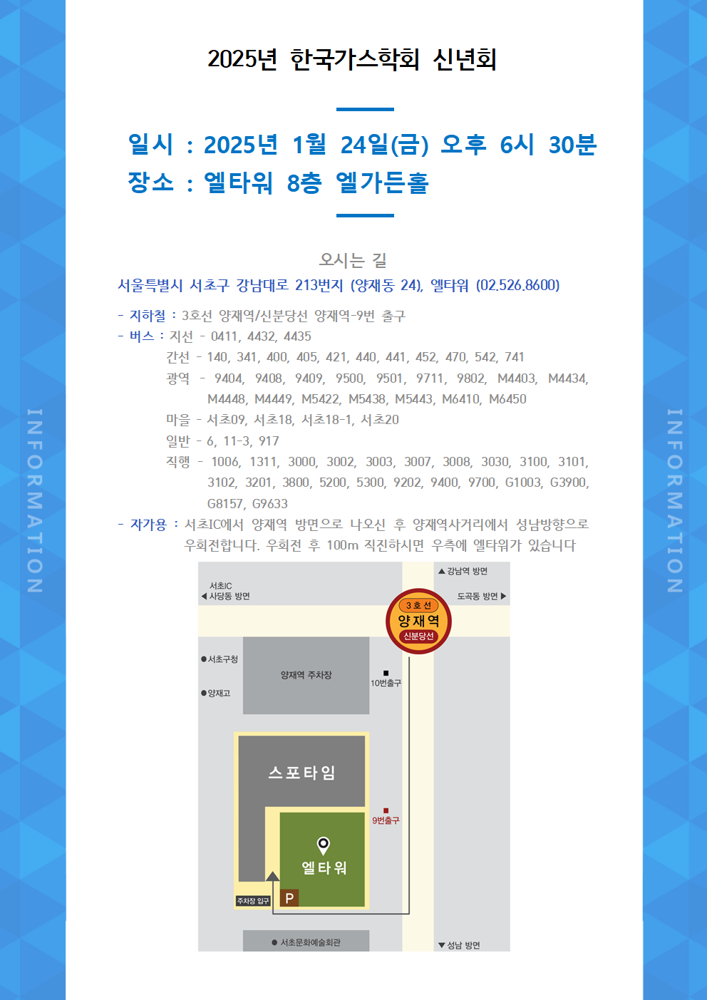 학회 회원도 참석이 가능하오니 참석을 원하시는 회원분께서는 학회 메일(kigas@kigas.or.kr)로 21일(화)까지 신청하시기 바랍니다.