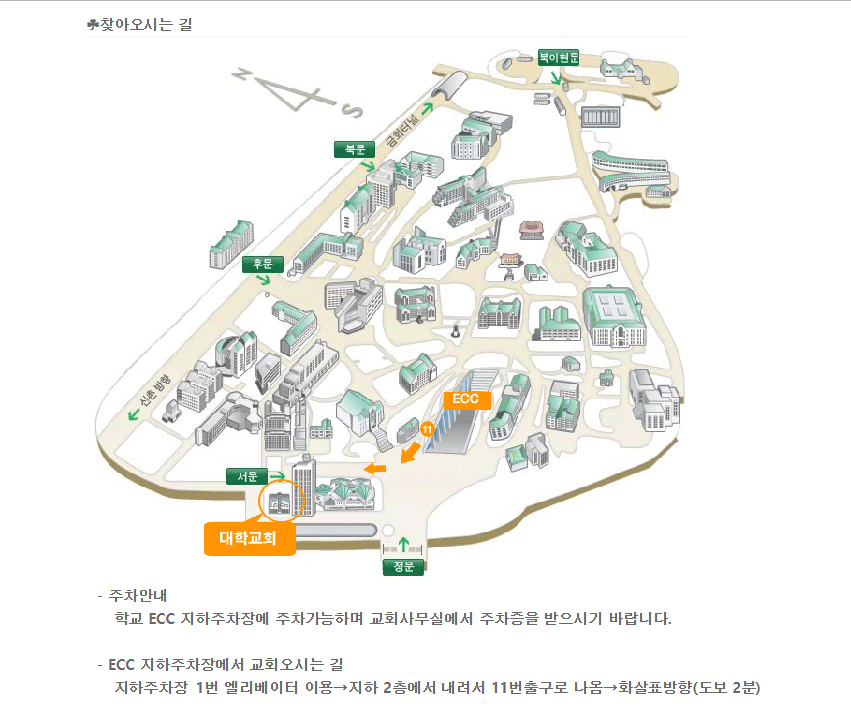 (이대 정문 통과 후 바로 왼쪽 방향, 주차는 필히 첨부파일 참조)