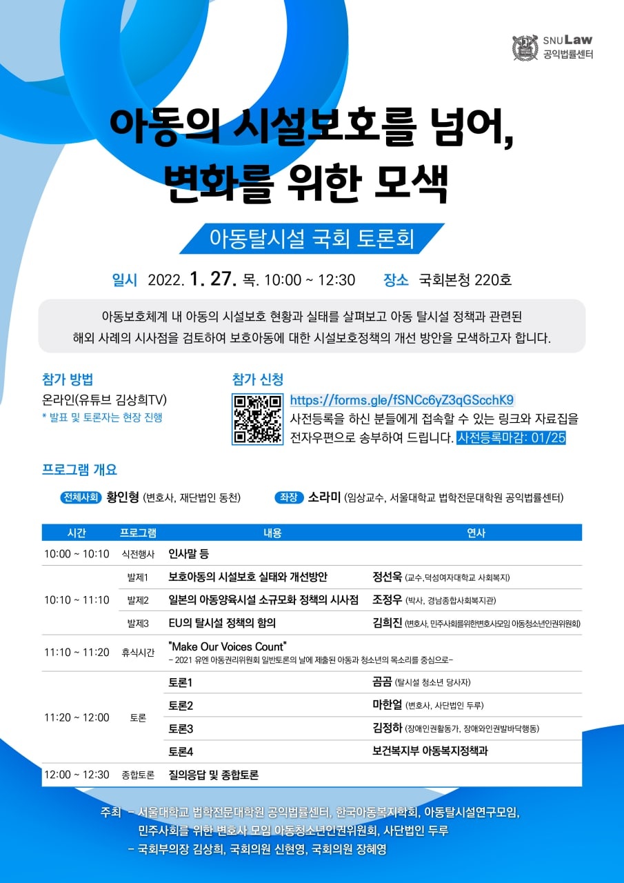 [홍보]아동탈시설 국회 토론회