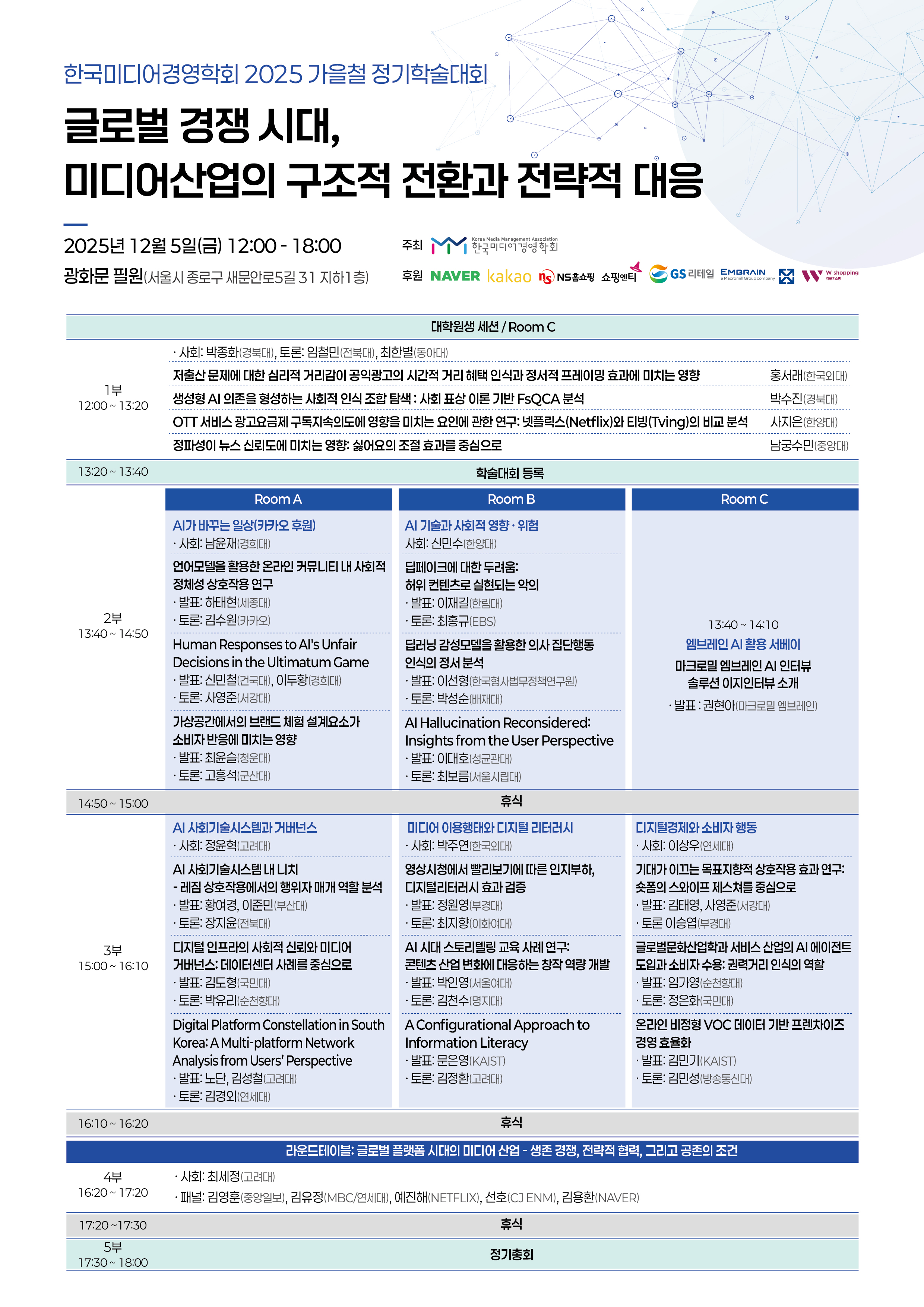 [공지] 한국미디어경영학회 2025 가을철 정기학술대회 포스터 및 프로그램표