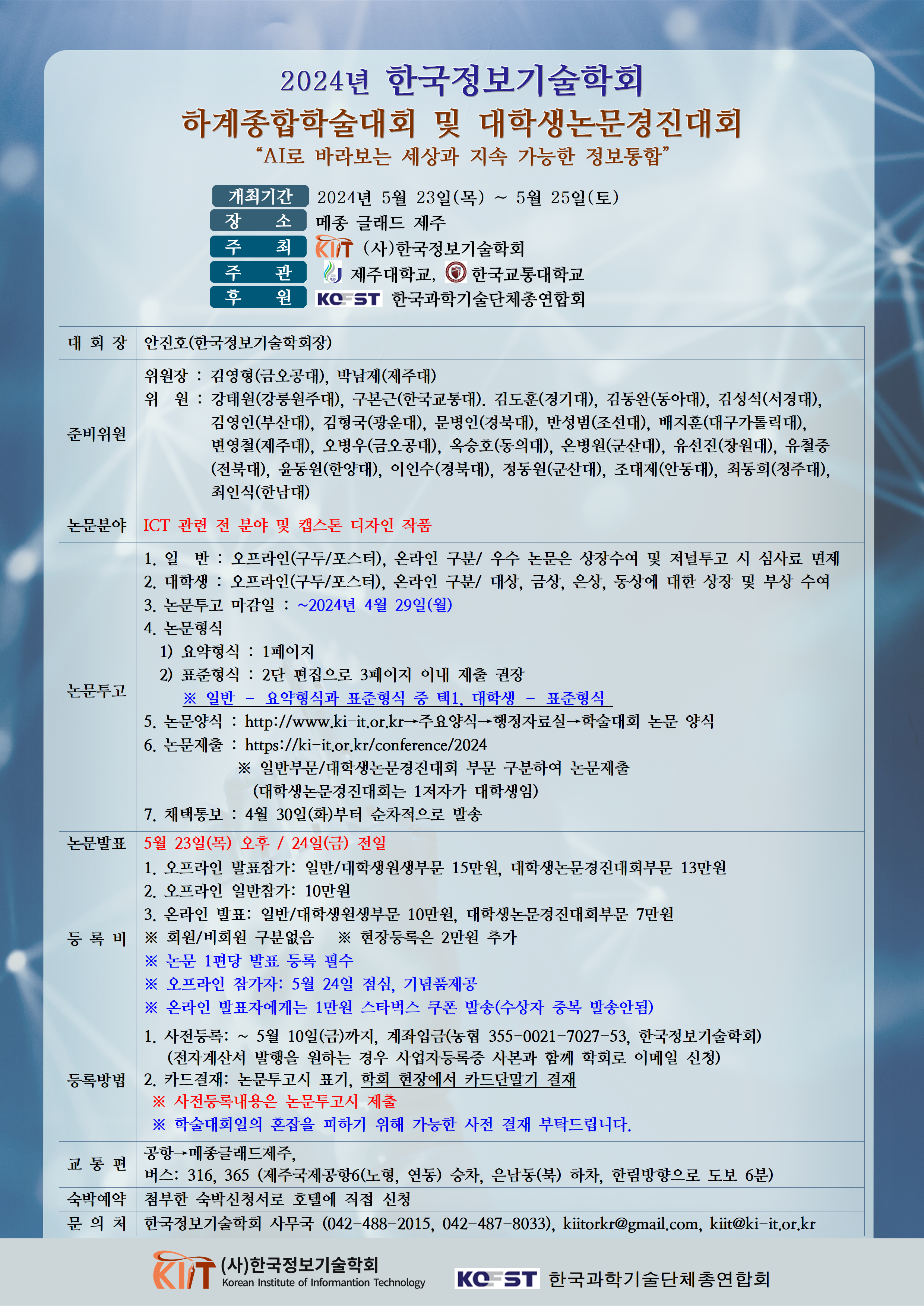 2024년 한국정보기술학회 하계종합학술대회 및 대학생논문경진대회 안내