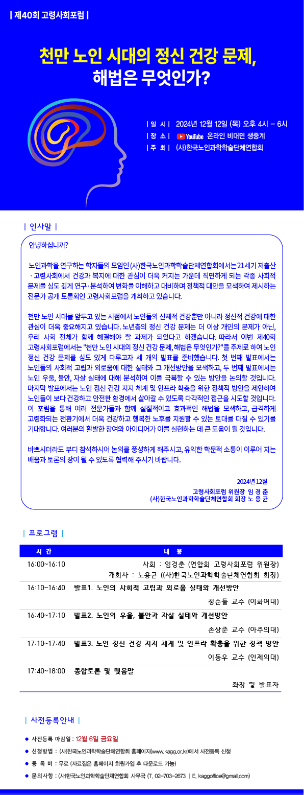 [홍보] [(사)한국노인과학학술단체연합회] 제40회 고령사회포럼(12/12) 안내