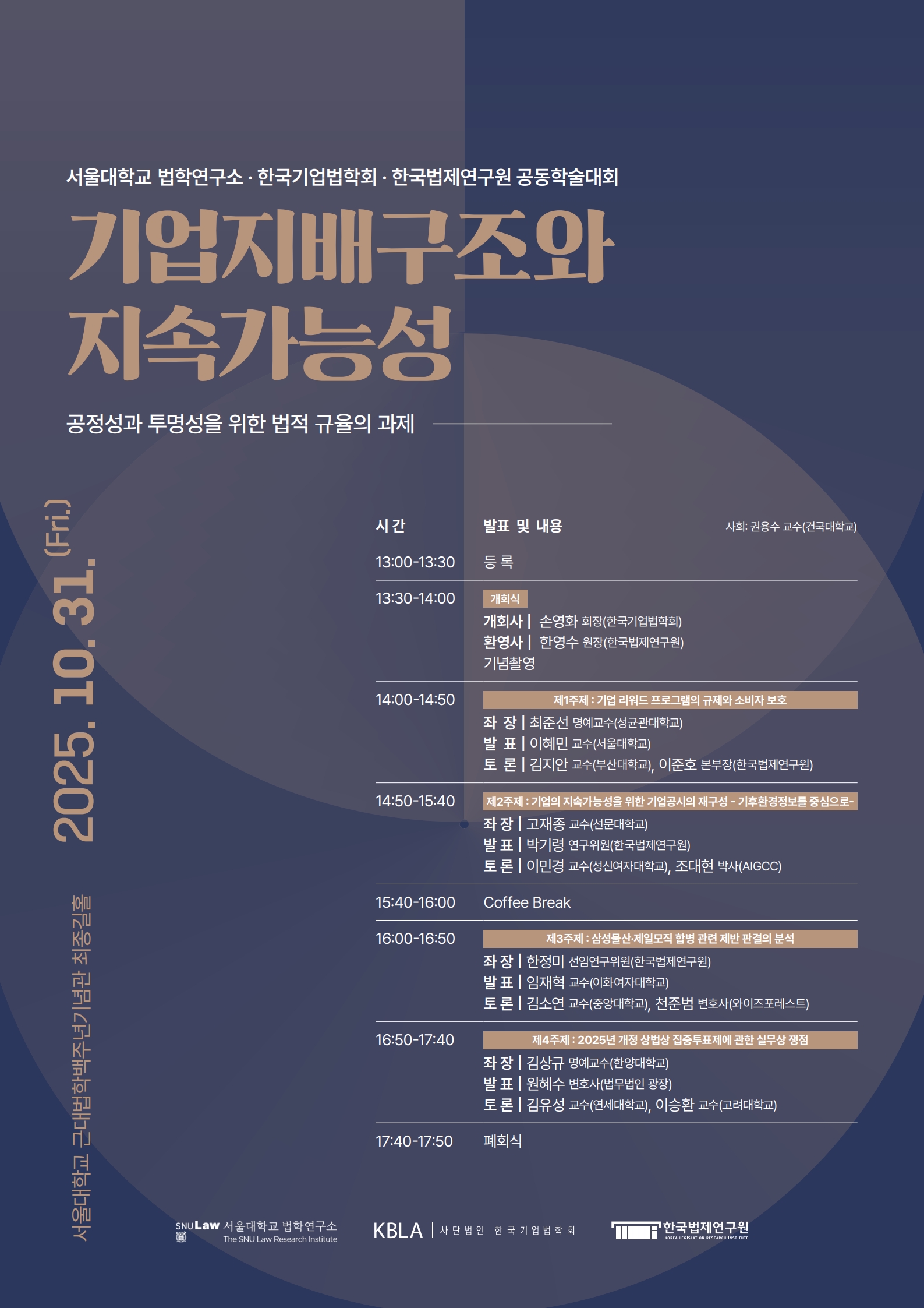 2025년도 추계 공동학술대회 개최 안내드립니다.○ 주제 : 기업지배구조와 지속가능성 : 공정성과 투명성을 위한 법적 규율의 과제